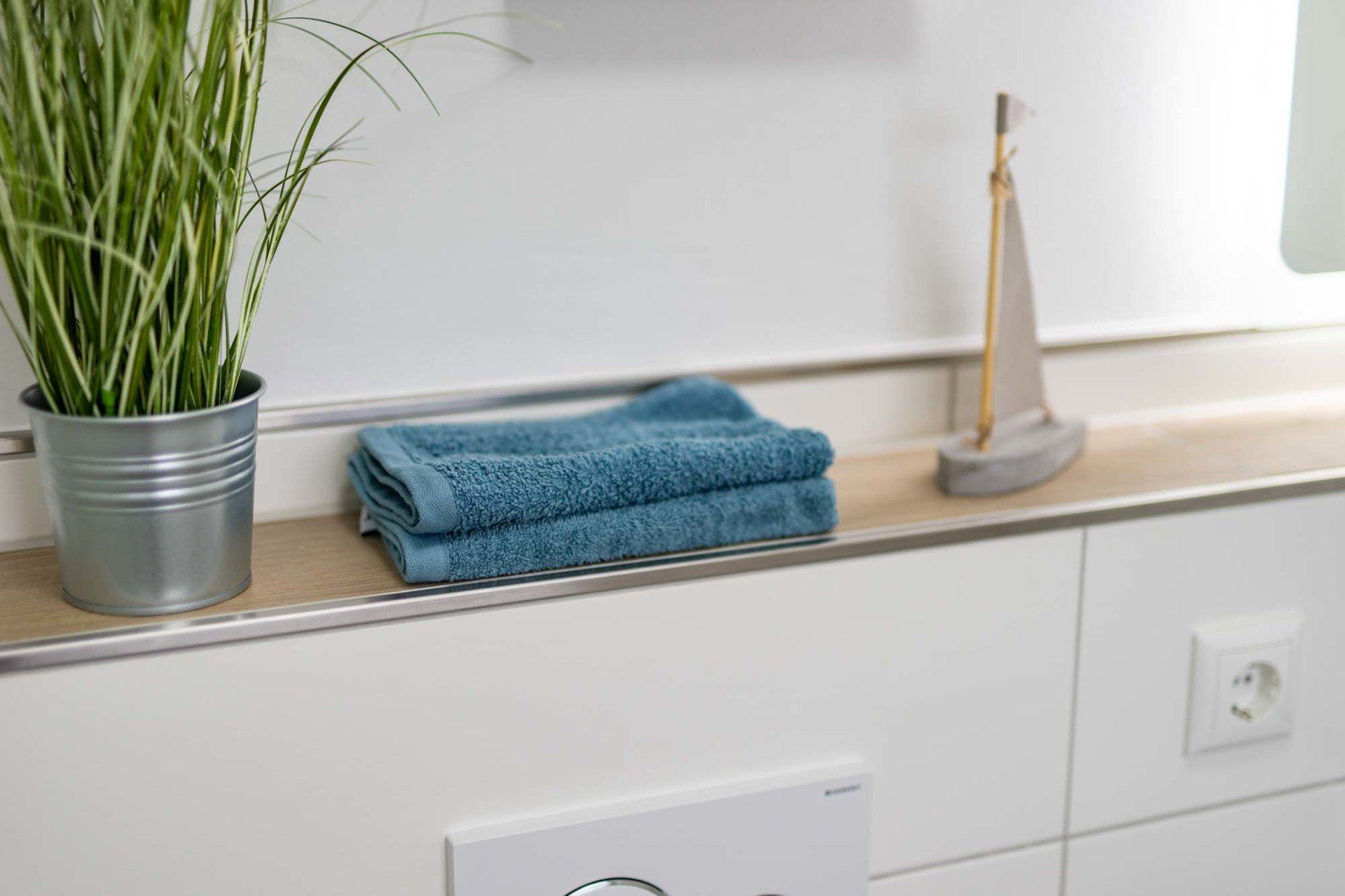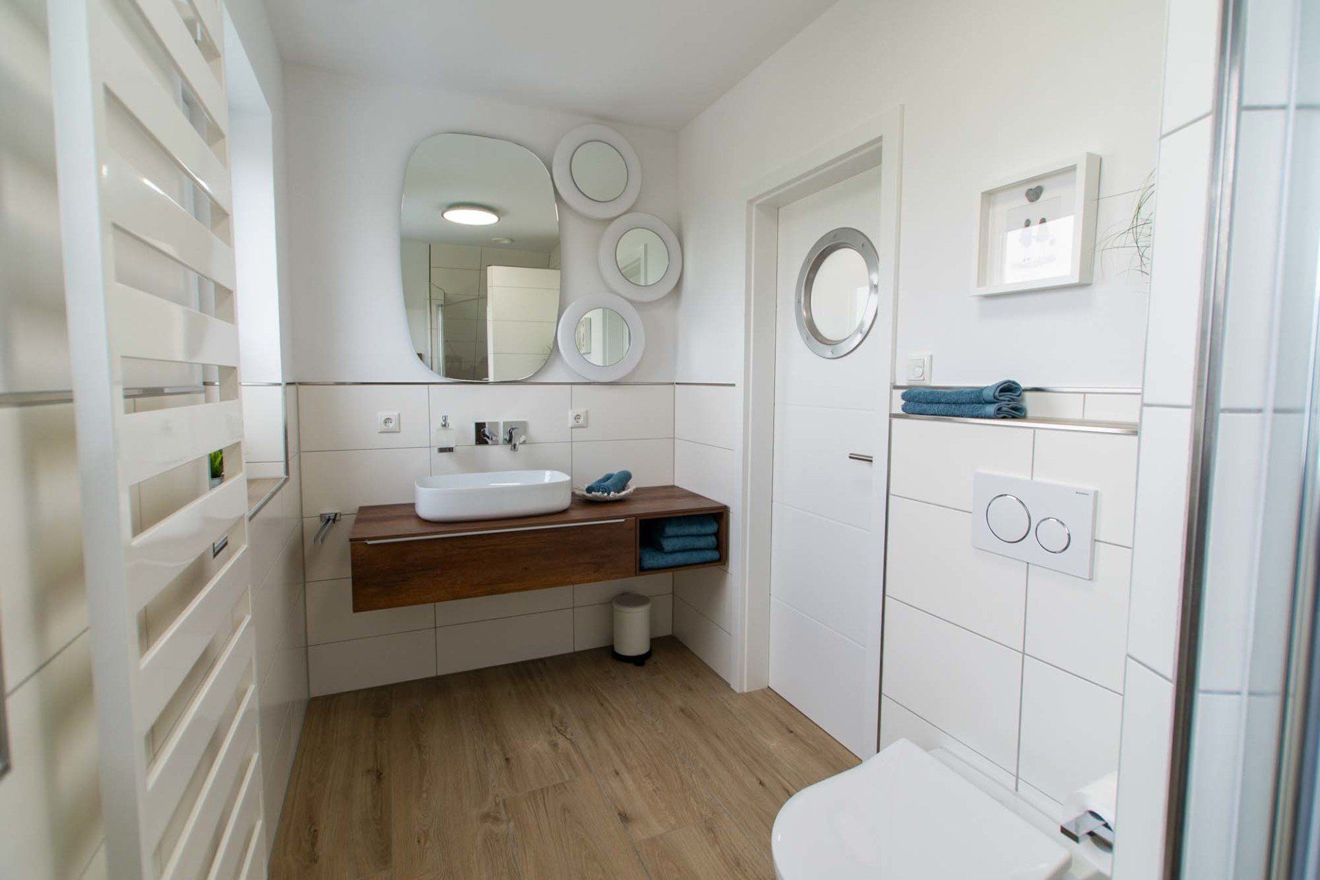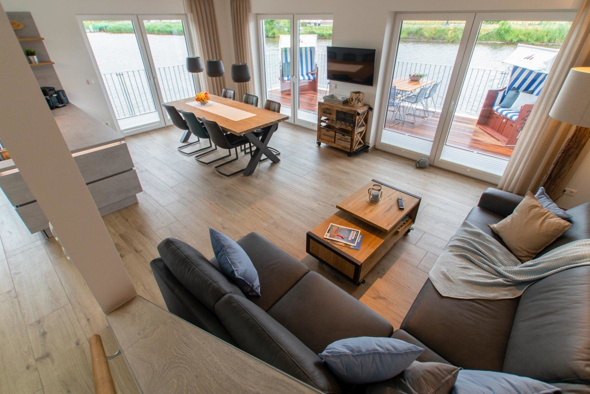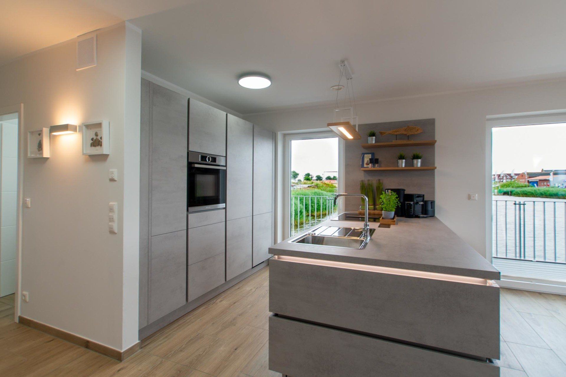 Die Ausstattung ist modern und gemütlich mit einem offenen Wohn-/Ess- und Kochbereich gestaltet und bietet auf 98 qm Platz für 2 bis 6 Personen. Im Erdgeschoss befindet sich zudem ein Hauswirtschaftsraum und ein Gäste-WC.